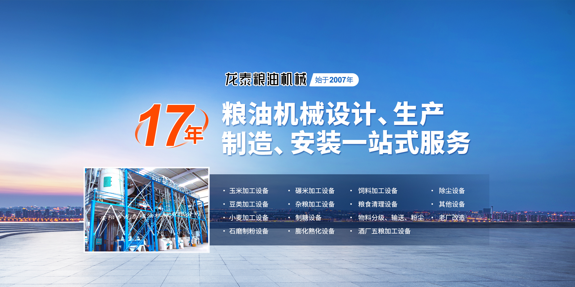 安陽市龍泰糧油機械有限公司是一個集糧油機械設計、生產制作、安裝于一體的設備制造商。公司坐落于農業生產基地河南省安陽市。多年來,公司與科研機構建立了廣泛的技術協作關系,精心致力于糧食加工設備的技術創新與應用,產品涵蓋整套碾米機械、小麥加工設備、玉米加工設備、雜糧加工設備,飼料加工及油脂設備等多個領域??沙薪尤椎慕昏€匙工程,提供從資金預算,整體規劃,土建設計,設備制造、安裝、培訓,售后保障等一站式服務。